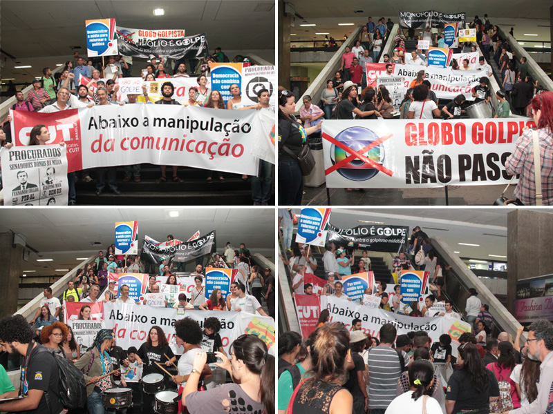 Em Brasília, os manifestantes se concentraram na Rodoviária do Plano Piloto, de onde seguiram em marcha até a sede da Rede Globo, na Asa Norte. Estavam reunidas diversas entidades, entre elas o Sindicato dos Bancários de Brasília e a Federação dos Trabalhadores em Empresas de Crédito do Centro Norte (Fetec-CUT/CN).