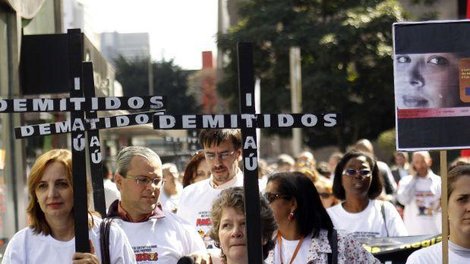 A simulação de um velório em plena Avenida Paulista, o coração financeiro de São Paulo, mostrou a insatisfação dos bancários com as demissões que vêm ocorrendo no Itaú Unibanco país afora. A manifestação, realizada na manhã desta quinta-feira (28), reuniu cerca de 200 dirigentes sindicais de vários estados e de outros países, que seguiram em ‘cortejo’ do MASP até o Centro Administrativo Brigadeiro, prédio do Itaú com cerca de 2 mil bancários. As diretoras do Sindicato Rosane Alaby e Louraci Morais participaram da atividade.