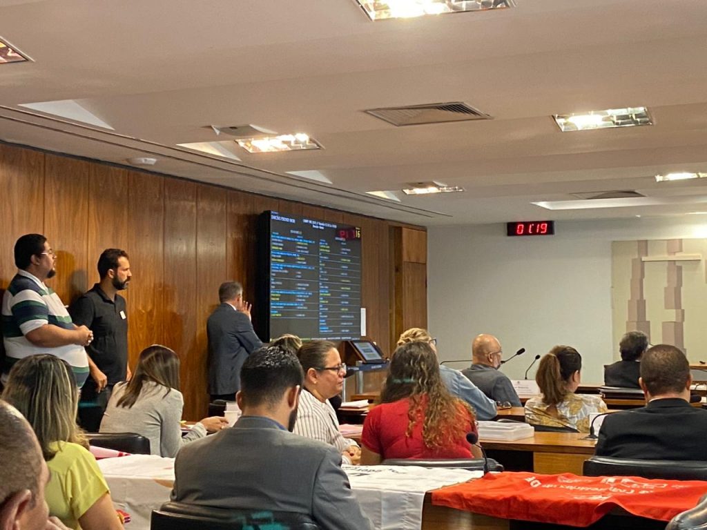 O Sindicato acompanhou na manhã desta quinta-feira (13) a reunião da comissão mista instalada no Senado que está analisando a MP 905, a da carteira de trabalho verde a amarela, que entre outras coisas acaba com a jornada de 6 horas dos bancários e institui o trabalho aos sábados.