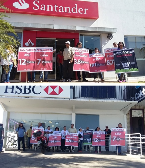 Em mais uma força tarefa contra a ganância dos banqueiros, dirigentes do Sindicato e da Federação dos Trabalhadores em Empresas de Crédito do Centro Norte (Fetec-CUT/CN) percorreram, nesta terça-feira (1º), as agências de bancos públicos e privados de Sobradinho, conversando com bancários e clientes sobre a Campanha Nacional 2015.