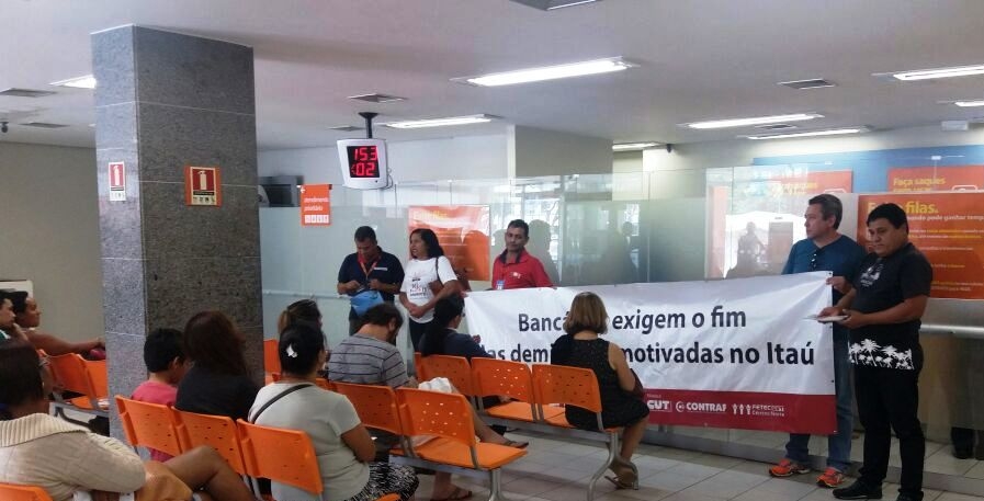 Diretores do Sindicato e da Fetec-CUT/CN percorreram diversas agências do Itaú, nesta segunda-feira (21), para protestar contra a persistente política de cortes de vagas, em detrimento aos lucros exorbitantes do banco. As unidades visitadas foram Taguatinga Centro, Comercial Norte, Hélio Prates e Pistão Sul; Riacho Fundo; Núcleo Bandeirante; Ceilândia; Samambaia; Recanto das Emas; Guará I e II; SIA e ParkShopping.