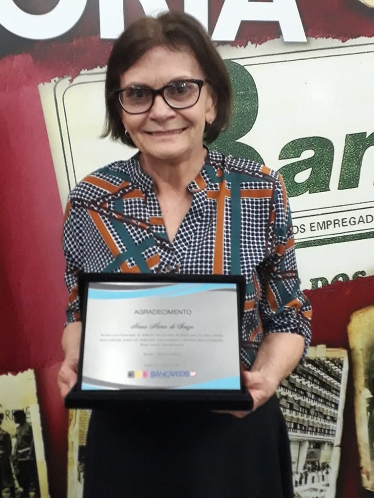 Para marcar a despedida, o presidente do Sindicato, Kleytton Morais, acompanhado dos diretores Fabiana Uehara e Cristiano Severo, em nome da atual diretoria, entregou à Neusinha, como é conhecida entre os colegas, uma placa de agradecimento pela sua valorosa contribuição à luta dos trabalhadores ao longo desse período.