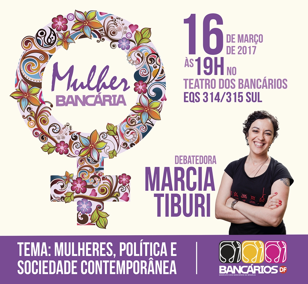 Entre os diversos atos programados pelos movimentos sindical e sociais para o mês da mulher, o Sindicato traz a Brasília no dia 16 a renomada filósofa, escritora e professora Marcia Tiburi, para um debate sobre o tema ‘Mulheres, política e sociedade contemporânea’.