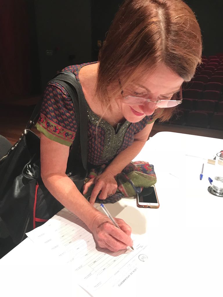 Após a palestra, Magda Biavaschi assinou (foto) a lista do projeto de lei de iniciativa popular para revogar a reforma trabalhista.