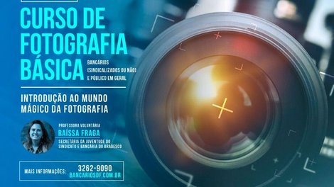 O Sindicato realizará o Curso de Fotografia Básica – Introdução ao Mundo Mágico da Fotografia, no período de 2 a 21 de maio, às segundas e quartas-feiras, das 19h30 às 22h, com aulas teóricas na sede da entidade e as práticas em lugares a combinar, com horário aos sábados, das 10h ao meio-dia. Serão oito encontros, abertos ao público em geral, totalizando 21 horas/aula com, no mínimo, 10 alunos e, no máximo, 20. A facilitadora/professora do curso será a secretária da Juventude do Sindicato e bancária do Bradesco, Raíssa Fraga (foto), que é voluntária no projeto. Ela esclarece que não há necessidade de o participante ter equipamento específico. Basta ter uma câmera comum ou celular.