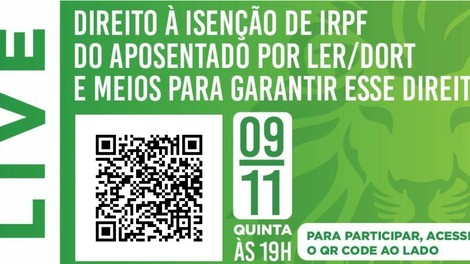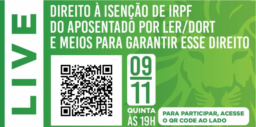 O Sindicato promove nesta quinta-feira (9), às 19h, live que vai abordar o direito à isenção de Imposto de Renda Pessoa Física (IRPF) sobre os proventos de aposentadoria recebidos por contribuinte que sofre de Lesão por Esforço Repetitivo (LER) ou Distúrbio Osteomuscular Relacionado ao Trabalho (Dort) cuja causa (ou concausa) seja o trabalho desempenhado (atividade laborativa). Na ocasião, serão discutidos os requisitos probatórios para o reconhecimento do direito.