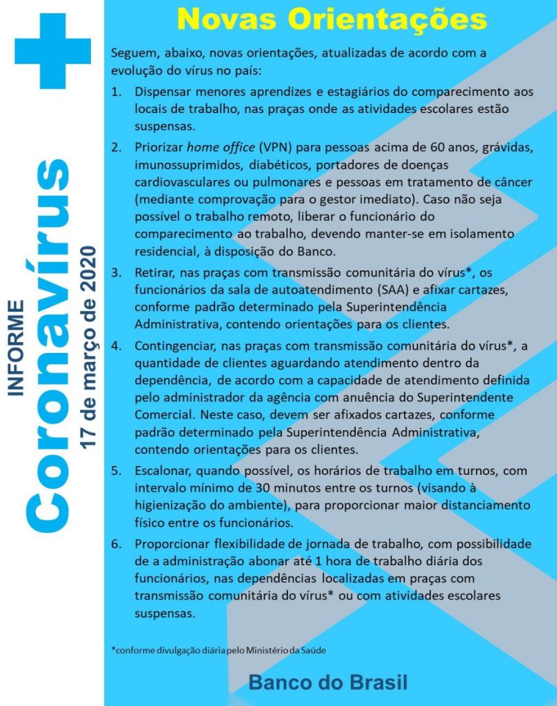 Confira, a seguir, as novas orientações divulgadas pelo BB: