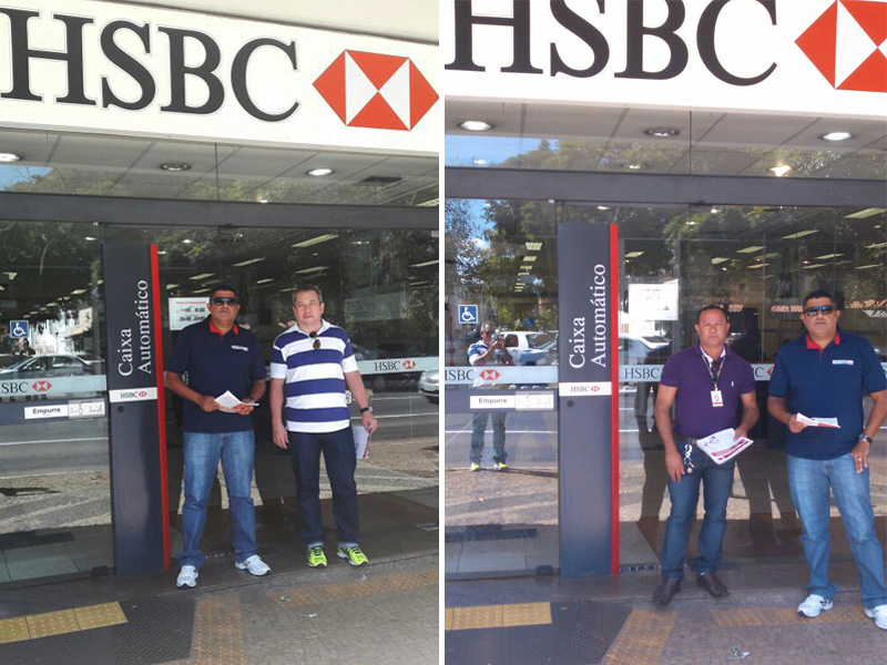 “Além de alertar os clientes e usuários sobre o descaso do HSBC, conversamos e asseguramos aos bancários que as atividades do Sindicato vão se intensificar caso o banco não mude de postura”, frisa Paulo Frazão, diretor do Sindicato e funcionário do HSBC. E enfatiza: “Vamos prosseguir na luta em defesa do emprego”.