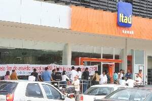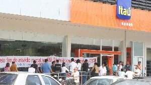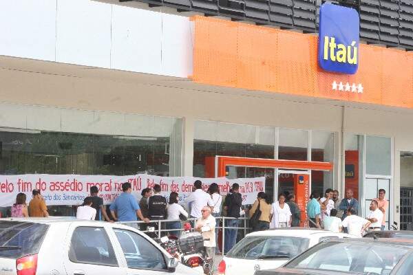 O Sindicato retardou nesta quarta-feira em duas horas a abertura da agência do Itáu da 706 Norte, em Brasília, dentro do Dia Nacional de Luta dos trabalhadores do banco pela melhoria da Participação Complementar nos Resultados (PCR), fim das demissões e do assédio moral, 14º salário e mais qualidade de vida. Durante todo o dia, os bancários realizam protestos e paralisações em todo o Brasil.