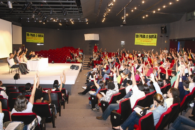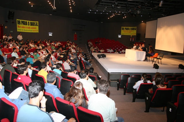 O Sindicato dos Bancários de Brasília realizou, na sexta-feira 4 de abril, em sua sede, nova reunião com os aprovados no concurso do Banco do Brasil realizado em 2006. Compareceram mais de 250 concursados, que debateram novos encaminhamentos para obter êxito na prorrogação da seleção. A reunião foi conduzida pelo presidente do Sindicato, Rodrigo Britto, pelo diretor da entidade e da Confederação Nacional dos Trabalhadores do Ramo Financeiro (Contraf/CUT), Eduardo Araújo, e pelos integrantes da Comissão dos Aprovados BB.