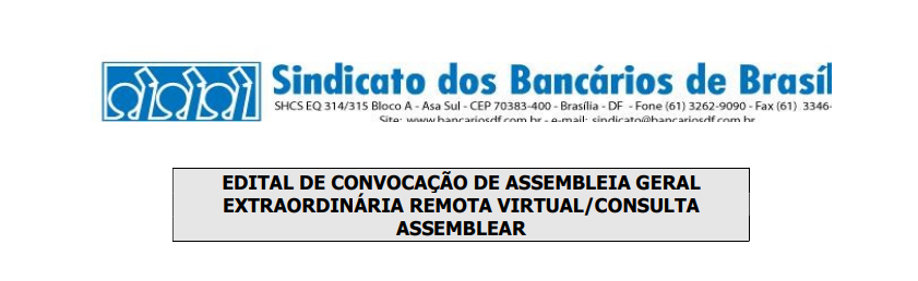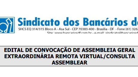 A assembleia terá início às 18h30 em primeira convocação, ou às 19h, em segunda e última convocação. Para participar, os bancários poderão acessar link que será disponibilizado aqui. Já a votação se dará por meio do link https://bancariosdf.votabem.com.br/.
