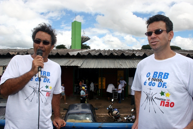 Diretores do Sindicato e funcionários do banco realizaram neste domingo 16 na Feira da Ceilândia mais uma manifestação em defesa do BRB público e do DF. O ato integra o conjunto de ações da campanha do Sindicato para barrar a possível privatização do banco, encampada pelo governador José Roberto Arruda (DEM).