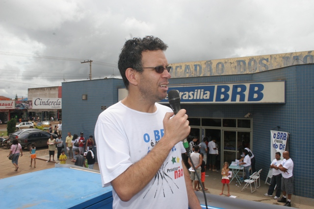 O secretário de Imprensa do Sindicato e funcionário do BRB, Antonio Eustáquio, explica à população que a privatização do banco é um erro