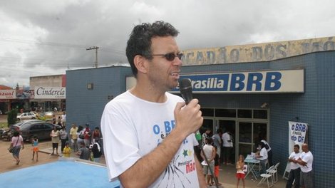 O secretário de Imprensa do Sindicato e funcionário do BRB, Antonio Eustáquio, explica à população que a privatização do banco é um erro