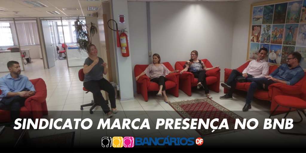 O Sindicato dos Bancários de Brasília realizou nesta terça, 23, reunião com os funcionários do Banco do Nordeste (BNB). Participaram da atividade os dirigentes sindicais Talita Régia, Wescly Queiroz e Rodrigo Britto. As principais pautas debatidas foram relacionadas à previdência complementar, ao Plano de Cargos e Remuneração (PCR), às ações judiciais e à organização do atendimento das demandas do quadro funcional.