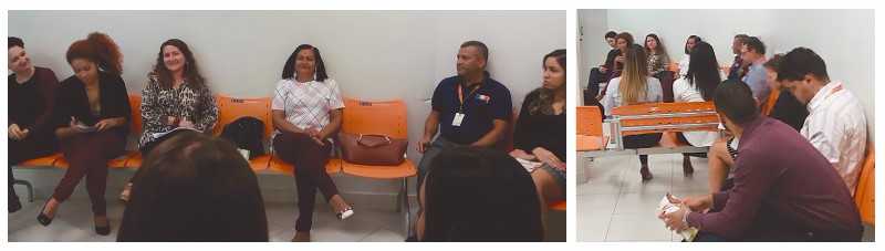 Na perspectiva de ampliar as ações de acolhimento e apoio àqueles que sofrem com a violência organizacional, o Sindicato vai aos locais de trabalho apresentando as psicólogas responsáveis pela Clínica do Trabalho para informar e mobilizar a categoria quanto ao direito à saúde e a condições de trabalho dignos.