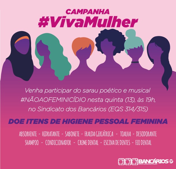 Paralelamente ao Sarau, será realizada a campanha #VivaMulher, que visa arrecadar itens de higiene pessoal feminino (absorvente, hidratante, sabonete, fralda geriátrica, toalha, desodorante, shampoo, condicionador, creme dental, escova de dentes e fio dental).