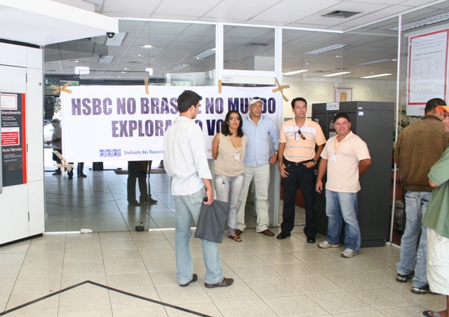 Em protesto contra o fechamento de uma série de agências e a onda de demissões praticados pelo banco em todo o país, o Sindicato retardou em uma hora na última sexta-feira 20 a abertura da agência do HSBC da 509 Sul, na via W3. Foram cerca de duzentos desligamentos nas duas últimas semanas no Brasil inteiro.
