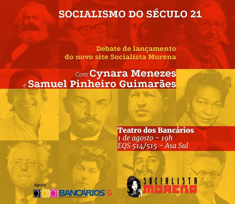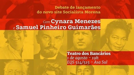 Com o apoio do Sindicato, será realizado nesta terça-feira (1º) um debate de lançamento do site Socialista Morena, com a jornalista Cynara Menezes e Samuel Pinheiro Guimarães, das 19h às 22h, no Teatro dos Bancários.