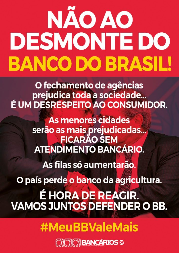 No início do mês de janeiro, o Banco do Brasil anunciou o plano de reestruturação da instituição. A proposta prevê um conjunto de medidas que visam enxugar a estrutura do BB. Entre as mudanças anunciadas está a demissão de mais de cinco mil funcionários, bem como o fechamento de 361 unidades de atendimento, sendo 112 agências, 7 escritórios e 242 postos de atendimento.