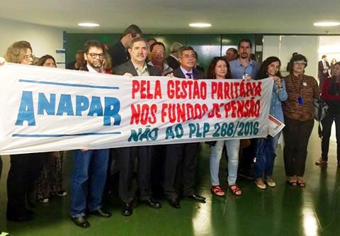 Diretores do Sindicato seguem na Câmara dos Deputados mobilizados para impedir a aprovação do PLP 268, que acaba com a participação dos associados na direção dos fundos de pensão. O PLP está pautado para ser votado hoje, em regime de urgência, por determinação de Michel Temer.