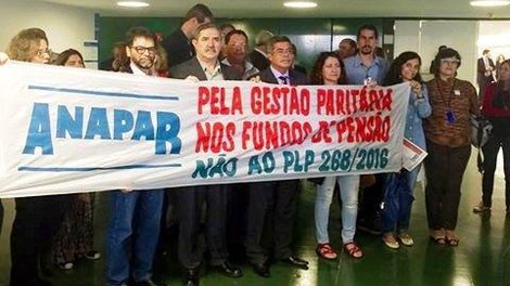 Diretores do Sindicato seguem na Câmara dos Deputados mobilizados para impedir a aprovação do PLP 268, que acaba com a participação dos associados na direção dos fundos de pensão. O PLP está pautado para ser votado hoje, em regime de urgência, por determinação de Michel Temer.