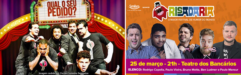 O Sindicato irá sortear nesta quinta-feira (23) quatro pares de ingressos para os bancários e bancárias sindicalizados assistirem espetáculos regados a muito humor, em cartaz neste final de semana, no Teatro dos Bancários. Dois são para o Risadaria SuperShows, com sessão no sábado (25), às 21h. As outras duas cortesias são para Qual o seu pedido?, que será apresentado no domingo, às 20h.
