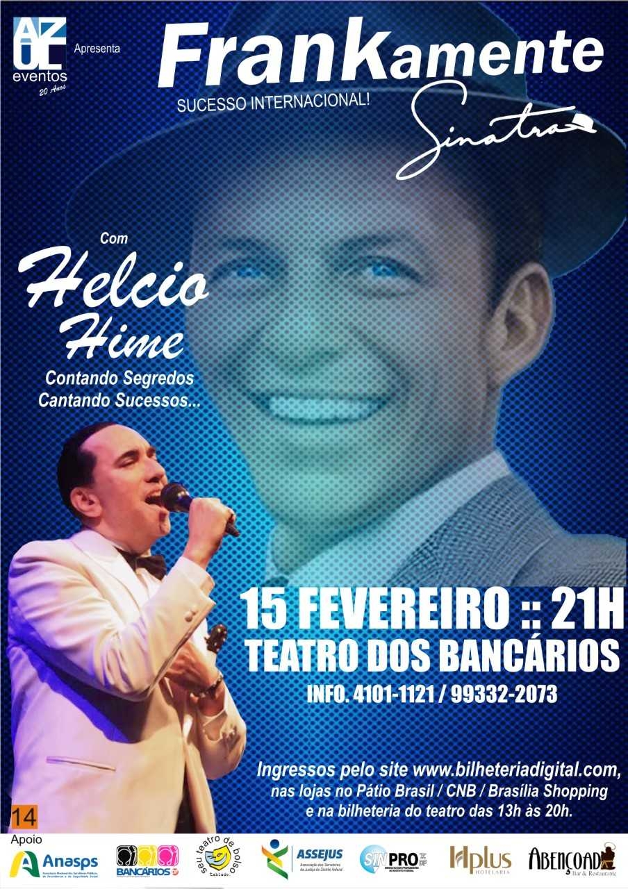 No espetáculo, o artista Helcio Hime nos conta e canta a fascinante história de Frank Sinatra e revela o homem por trás do mito. No repertório, músicas inesquecíveis, magistralmente interpretadas por Hime: “New York, New York”, “Strangers in the Night”, “Garota de Ipanema”, “Let Me Try Again”, “Night and Day”, “Fly me to the Moon”, “My Way”.