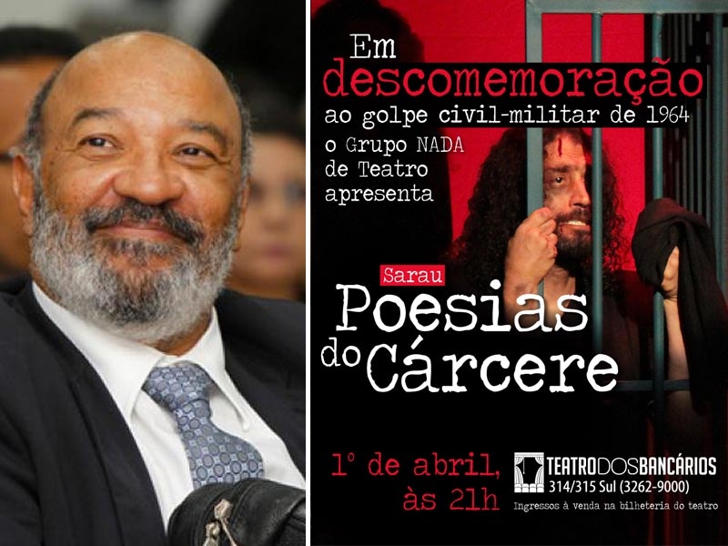 Sucesso de público, o sarau Poesias do Cárcere, prestigiado no ano passado por mais de 1,5 mil espectadores no Teatro dos Bancários, retorna em apresentação única em “descomemoração” ao golpe civil-militar de 1964.