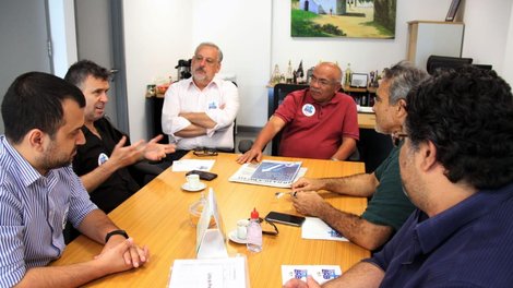 Nesta sexta-feira (15), diretores do Sindicato dos Bancários e da Federação dos Bancários do Centro Norte (Fetec-CUT/CN) tiveram a primeira audiência na Câmara Legislativa, dentro da estratégia de dialogar com todos os parlamentares para fazê-los ver a importância do BRB público e de como é nocivo o projeto do deputado Robério Negreiros (PSD), que versa sobre a retirada do BRB da folha de pagamentos dos empregados da CLDF.