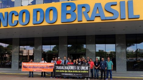 O Sindicato realizou na manhã desta quinta-feira (21) atos em unidades do Banco do Brasil, da Caixa e do BRB, para denunciar a MP 905/2019 e convocar os bancários e bancárias a se mobilizarem em defesa da jornada de 6h, do descanso remunerado aos sábados e domingos, da PLR negociada coletivamente e de todos direitos consagrados pela Convenção Coletiva Nacional (CCT) da categoria.