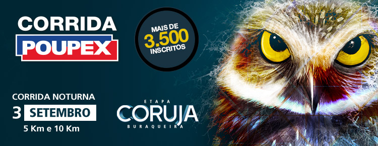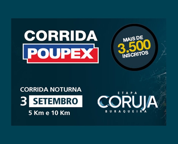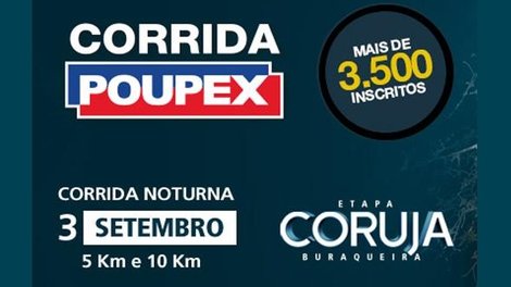 No dia 3 de setembro, os atletas que têm preferência pela corrida de rua poderão participar da Corrida da Poupex, que será à noite e recebe o nome de Etapa Coruja Buraqueira. Com largada prevista para as 19h, no Setor Militar Urbano, a corrida será disputada com percursos de 5 e 10 Km.