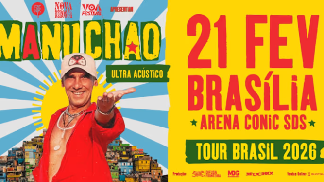 O Sindicato irá sortear 20 ingressos entre as associadas e os associados para o aguardado show de Manu Chao, que desembarca em Brasília para uma super apresentação no formato "Ultra Acústico" no dia 21 de fevereiro, às 18h, na Nova Birosca, no Conic. O show traz sucessos clássicos e músicas novas do último álbum Viva Tu, lançado em 2024.