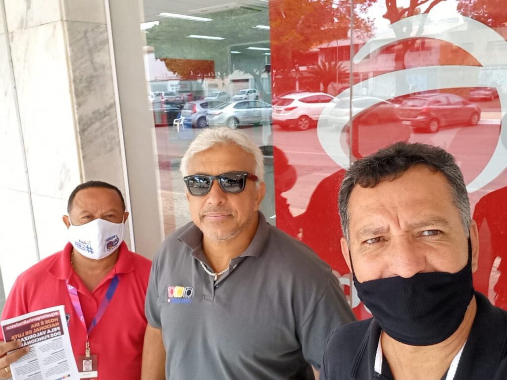Diretor do Sindicato, Paulo Frazão esclareceu que "três equipes percorreram as unidades do banco, levando informações aos trabalhadores, que estão preocupados, principalmente, com os desligamentos na instituição financeira, que vem descumprindo a promessa de não demitir durante a pandemia de covid-19”.