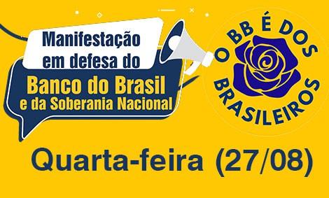 Os empregados do Banco do Brasil de todo o país realizam, nesta quarta-feira (27), o lançamento da campanha “#OBBédosBrasileiros”, em defesa do banco público e de seus trabalhadores. Em Brasília, o ato está marcado para as 11h30, em frente à sede do banco, localizada na 201 Norte.