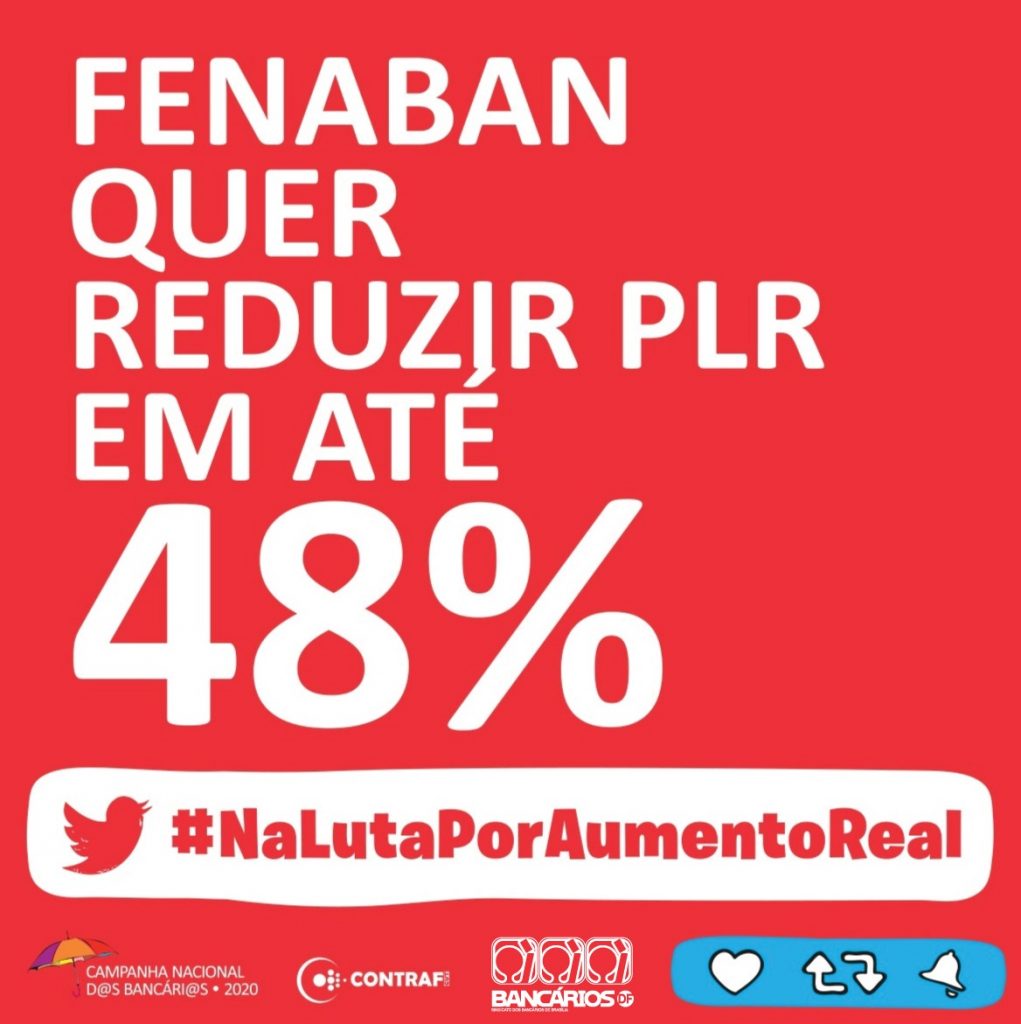 A Fenaban apresentou na rodada de negociação desta terça-feira (18) proposta que reduz em até 48% a PLR conquistada pela categoria bancária na Convenção Nacional. O Comando Nacional dos Bancários rechaçou a ideia e cobrou atendimento às reivindicações econômicas apresentadas aos representantes dos bancos na última sexta-feira (14).