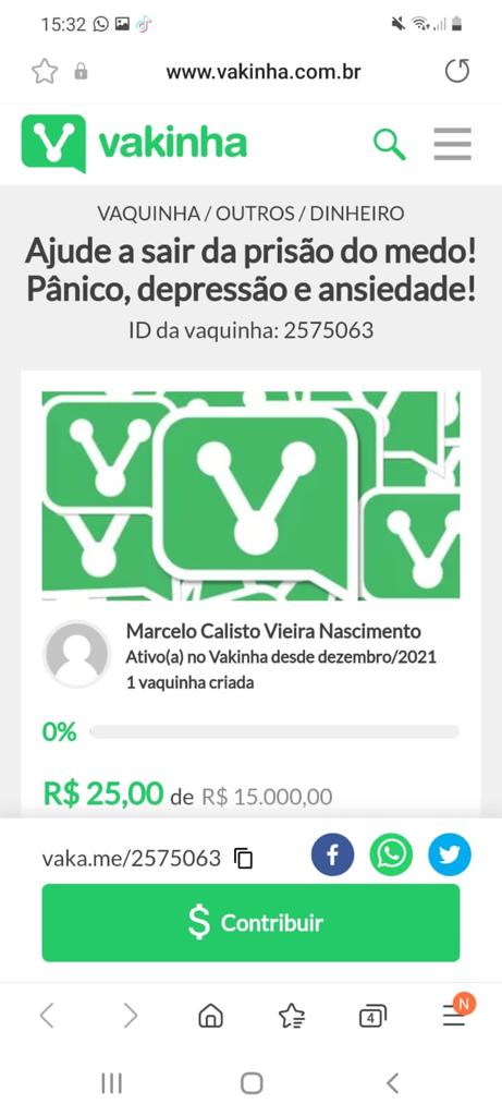 Para aqueles que quiserem ajudar com qualquer quantia, basta acessar o link da Vaquinha: http://vaka.me/2575063 ou doar através da chave pix: (61) 98156-0286.