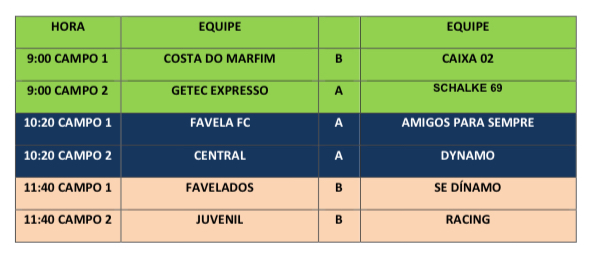 No sábado (20), a primeira disputa terminou com um temido 7 a 1 entre Dynamo e Favela. Pelo grupo B, Juvenil e Caixa 02 entraram em campo e finalizaram a partida com o placar em 5 a 2. Shalke 69 se firmou como líder na tabela ganhando de Amigos para Sempre por 9 a 2.