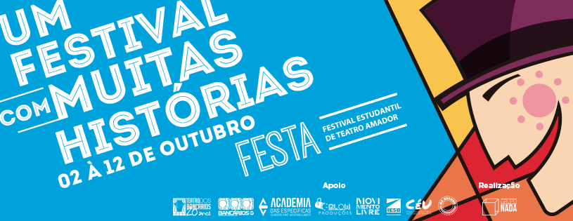 De 2 a 12 de outubro, o Teatro dos Bancários recebe a 4ª edição do Festival Estudantil de Teatro Amador (Festa). Este ano, a mostra competitiva apresentará 11 produções estudantis de escolas da rede pública e privada do Distrito Federal, envolvendo mais de 150 alunos.