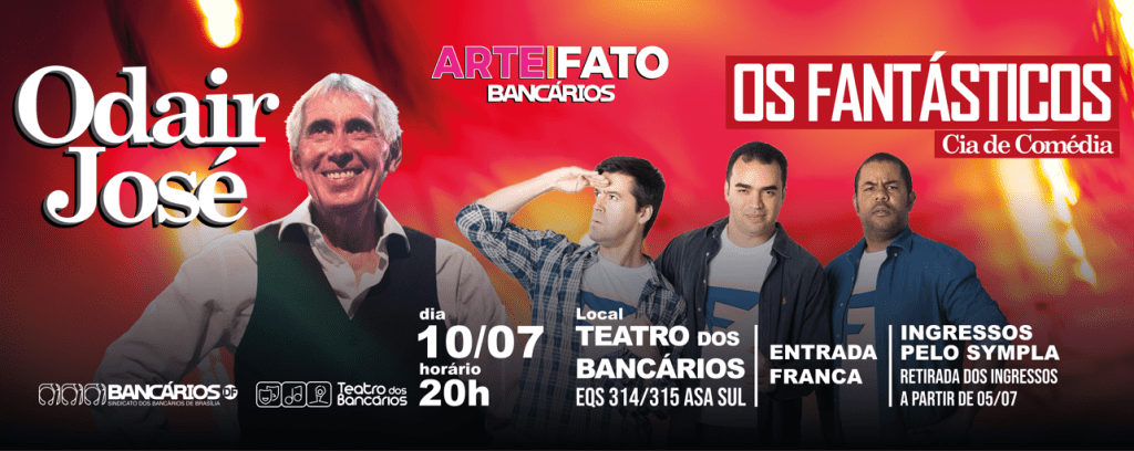 A entrada do ArteFato é gratuita, sujeito à lotação, e os ingressos devem ser retirados pelo Sympla, a partir de 5 de julho. Agende a data e garanta o seu!