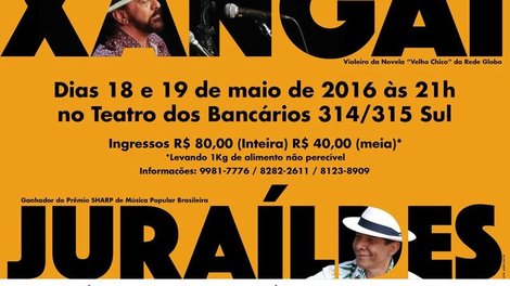 Xangai e Juraildes da Cruz, grandes nomes da cantoria popular brasileira, sobem ao palco do Teatro dos Bancários nesta quarta (18) e quinta (19), às 21h, em comemoração aos 40 anos de carreira. Bancários pagam meia-entrada.