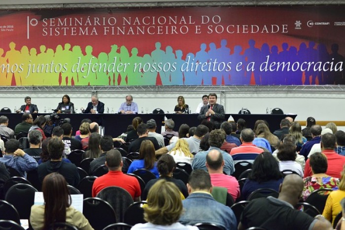 O segundo painel do Seminário “Sistema Financeiro e Sociedade”, no hotel Holiday Inn Parque Anhembi, em São Paulo, nesta sexta-feira (29), discutiu as "Novas Ofensivas aos Direitos dos Trabalhadores" e contou com a participação do jurista Ricardo Lodi Ribeiro, professor de Direito Financeiro da Universidade do Estado do Rio de Ja neiro (UERJ), e de Bernardo Mançano Fernandes, mestre e doutor em Geografia Humana pela Universidade de São Paulo.