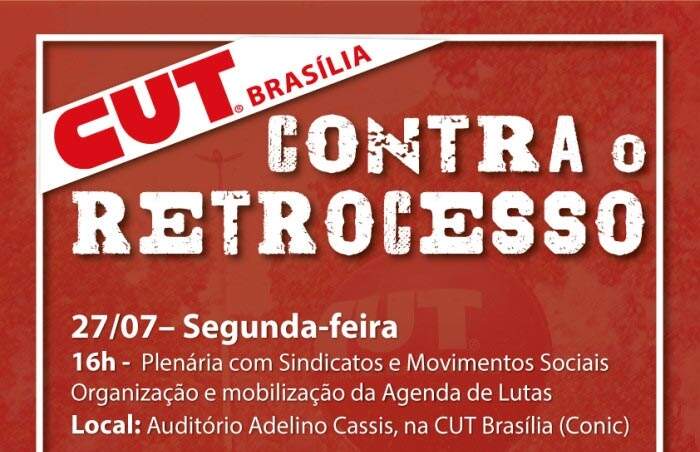Na segunda (17), às 16h, no auditório Adelino Cassis, no Conic, a CUT Brasília realiza uma plenária para organizar essas manifestações. Estarão presentes representantes de todos os sindicatos e entidades filiadas e do movimento social.