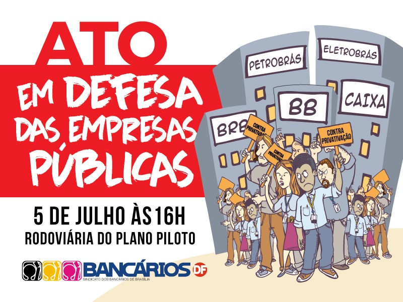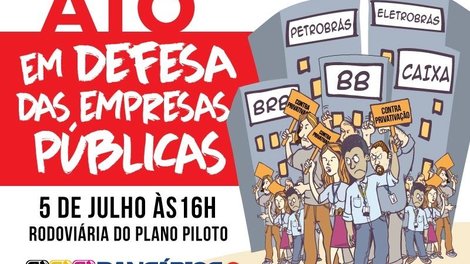 Na esteira de uma importante vitória no Supremo Tribunal Federal (STF), que na semana passada proibiu, por meio de liminar, o governo Temer de vender o controle acionário de estatais e suas subsidiárias sem a aprovação do Legislativo e sem licitação prévia, os trabalhadores se unem num grande ato nesta quinta-feira (5), às 16h, na Rodoviária do Plano Piloto, no Dia Nacional de Luta em Defesa das Empresas Públicas e da Soberania Nacional.
