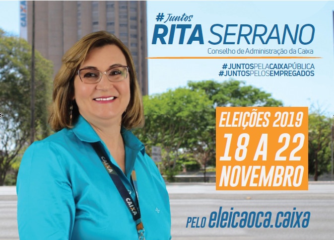 Empregada da Caixa desde 1989, Rita Serrano participa do CA desde 2014, quando ocupou o cargo de suplente, sendo eleita titular em 2017. Mestre em Administração e graduada em Estudos Sociais e História, a atual conselheira tem longa trajetória no movimento sindical e social. Foi presidente do Sindicato dos Bancários do ABC entre 2006 e 2012, coordena desde 2015 o Comitê Nacional em Defesa das Empresas Públicas e atualmente faz parte do Conselho Fiscal da Fenae.