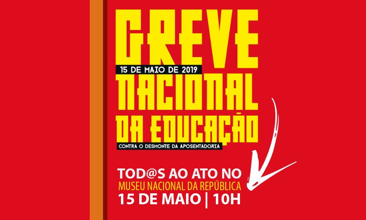 A CUT Brasília convoca toda classe trabalhadora do DF para engrossar a greve nacional da Educação, agendada para dia 15 de maio, quarta-feira. A atividade no DF será às 10h, no Museu Nacional da República.