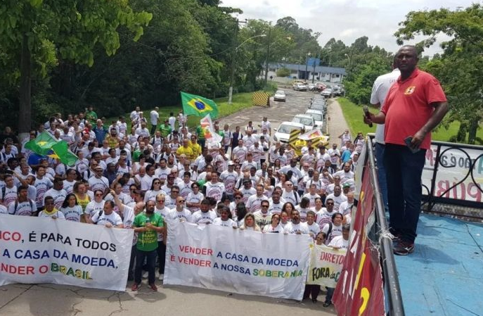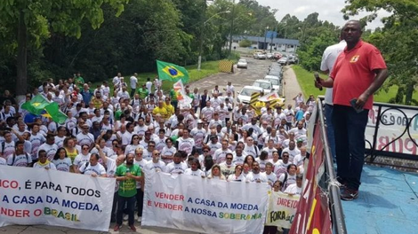 “A luta é pelo restabelecimento das cláusulas sociais e do nosso poder econômico, mas a luta maior é contra a privatização e nos juntamos aos petroleiros, bancários e outras categorias para formar uma grande resistência para salvar a soberania nacional e expulsar este governo que não tem amor pelo Brasil nem pelo povo brasileiro”, disse Aluizio Junior durante o protesto realizado ontem em frente à Casa da Moeda.
