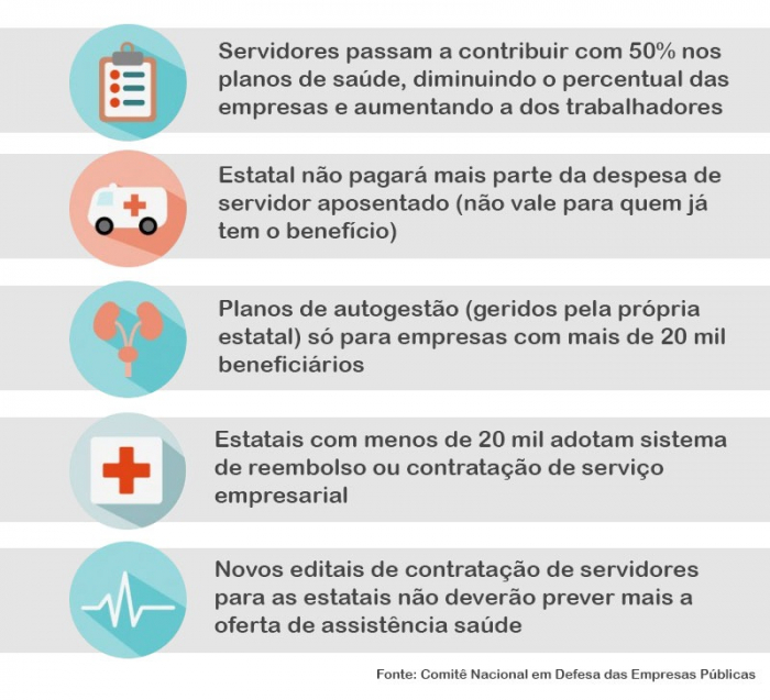 Ao longo dos próximos quatro anos, conforme determinam as resoluções do CGPAR, todas as estatais federais deverão implantar um sistema paritário de contribuição nos seus serviços de assistência à saúde. Isso significa que empresas e trabalhadores terão de dividir, em partes iguais, os custos com a manutenção dos planos.