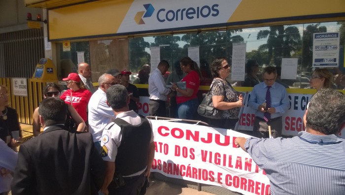 Com o apoio da Central Única dos Trabalhadores, do Sindicato dos Bancários e do Sindicato dos Vigilantes, o Sindicato dos Trabalhadores em Correios e Telégrafos – Sintect-DF, promoveu ato público em frente à agência dos Correios localizada em Taguatinga centro, para reivindicar mais segurança no trabalho. A ação arrancou uma reunião com representantes dos Correios, que se comprometeram a construir, junto com a categoria, um plano de segurança para o setor.
