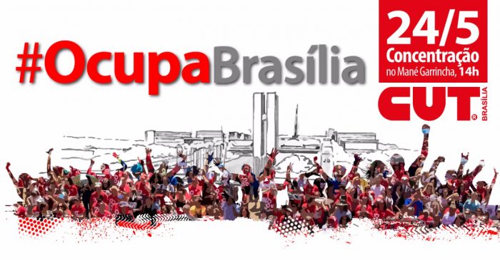 No dia 24 de maio, vamos ocupar Brasília para, mais uma vez, deixarmos claro que a classe trabalhadora, os movimentos sociais e todo o conjunto da sociedade repudiam toda a retirada de direitos. Vamos Ocupar Brasília e dizer #NãoaosladrõesdeDireitos. A concentração está prevista para as 14h, no Estádio Mané Garrincha.